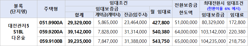 | 주택명 | 대전관저5 S1BL 다온숲 임대주택 |