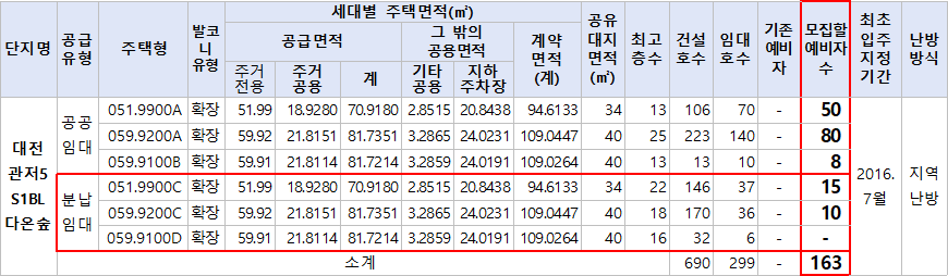 대전관저5 S1BL 다온숲 10년 공공임대 및 분납임대주택은 동일단지로 중복신청시 모두 부적격처리 됩니다. (EX. 10년 공공임대 51A형과 분납임대주택 59C형 각각 신청했을 경우 모두 부적격처리)
