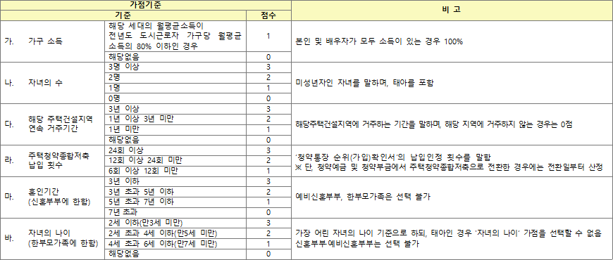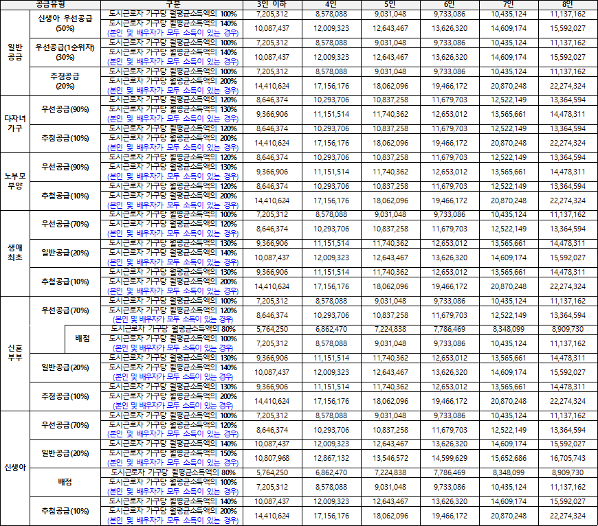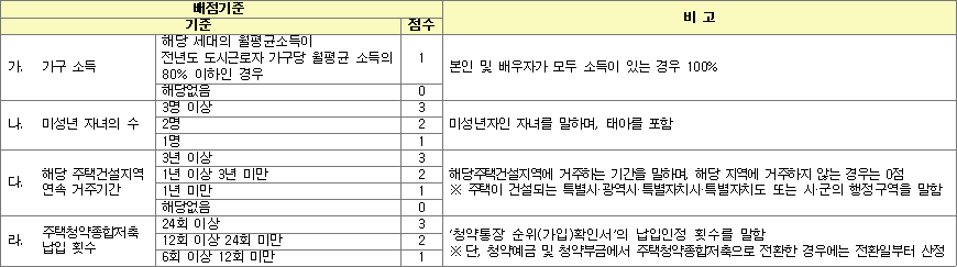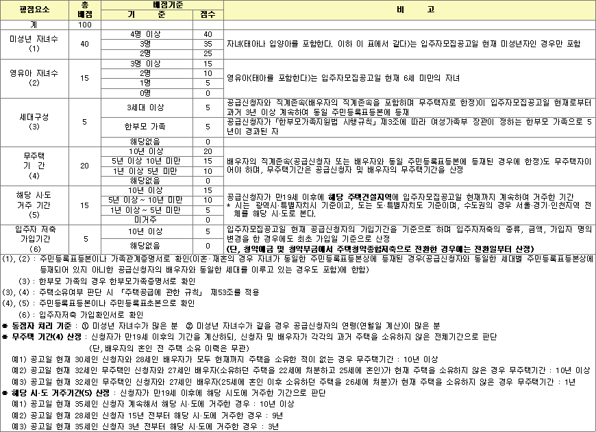 단, 당첨자발표일이 동일한 주택에 대해 부부가 각각 공급 신청하는 경우는 제외)의 기준으로 공급합니다. 동일세대 내에서 1인 이상이 당첨자 발표일이 서로 다른 국민주택에 청약하는 경우 당첨자 발표일이 우선인 단지의 당첨만 유효하며 계약체결이 가능합니다. (후당첨 단지 무효 또는 부적격처리 됨에 유의)