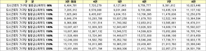 소득기준월평균소득의 100% (본인 및 배우자가 모두 소득이 있는 경우 200%)