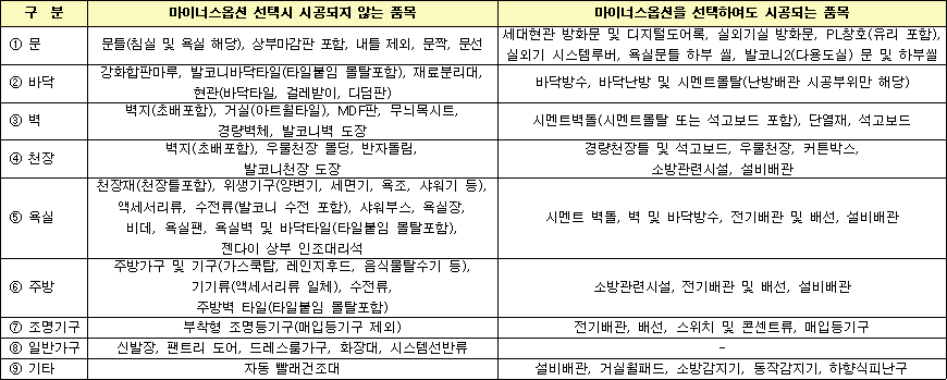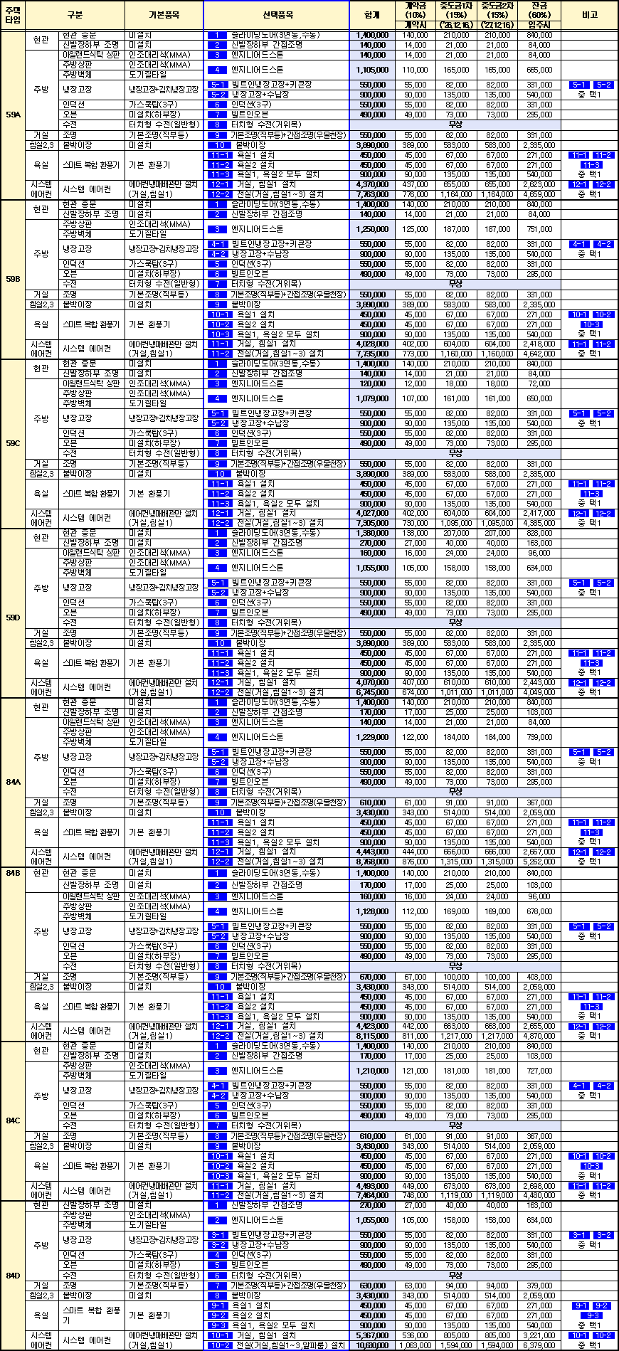 ※ 현장여건 (건축 공정 등)에 따라 일부 항목은 설치가 제한될 수 있습니다.