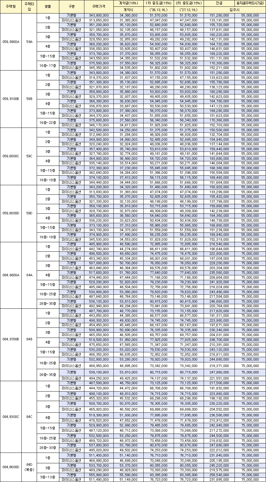 금융권의 중도금 집단대출규제로 인하여 중도금 집단대출이 현재 미정이며, 중도금 집단대출이 불가할 경우 수분양자 자력으로 중도금을 납부해야 함을 알려드립니다.