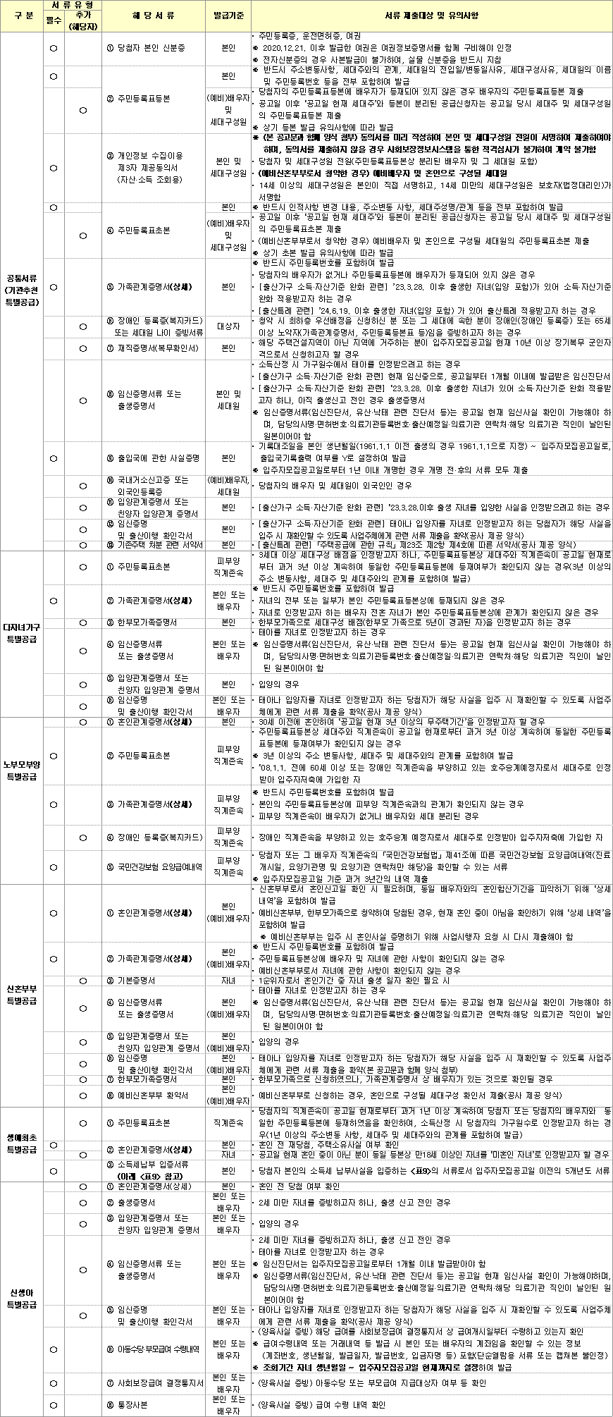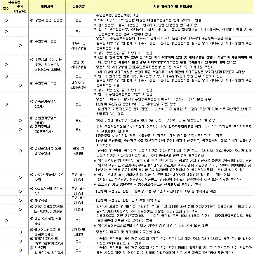※ 공통서류와 특별공급 유형별 서류 추가 제출