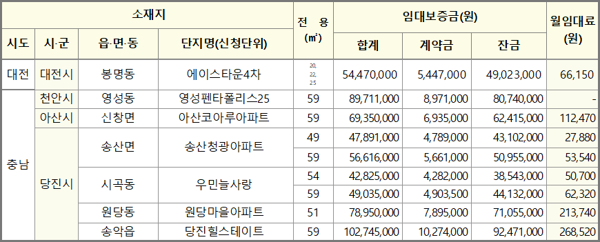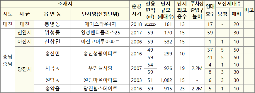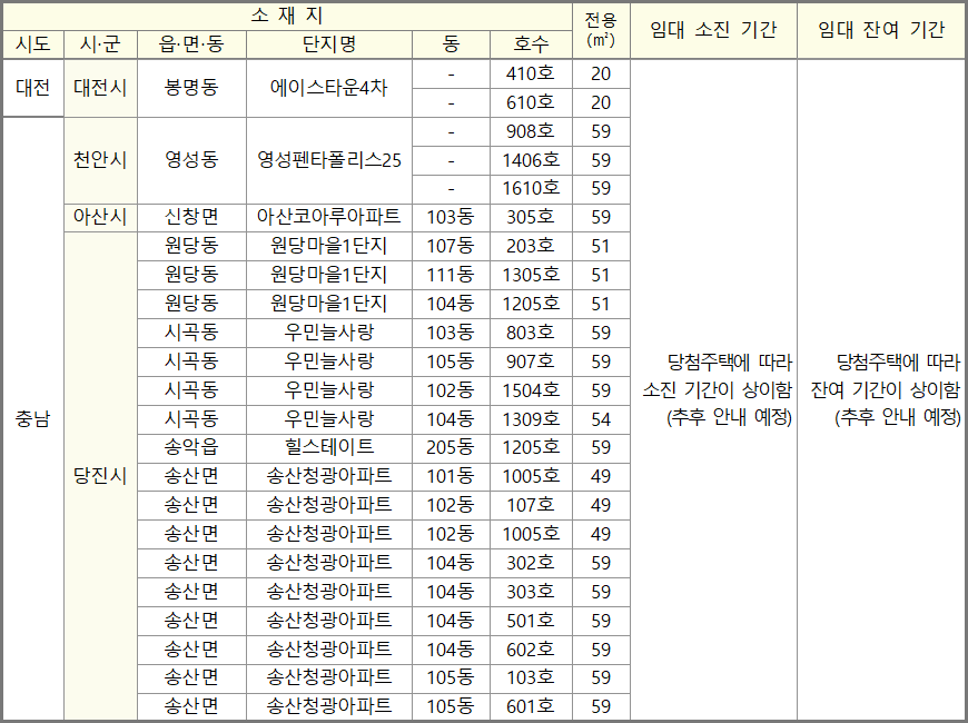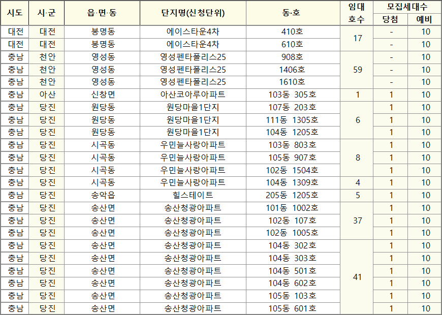 대전충남 청년 신혼부부 매입임대리츠주택 동호 상세정보