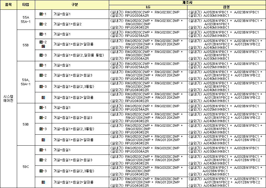 | 55B | 침실2/알파룸 분리 | 침실2/알파룸 통합 | 기본형 또는 공간확장형 中 1가지 선택 |